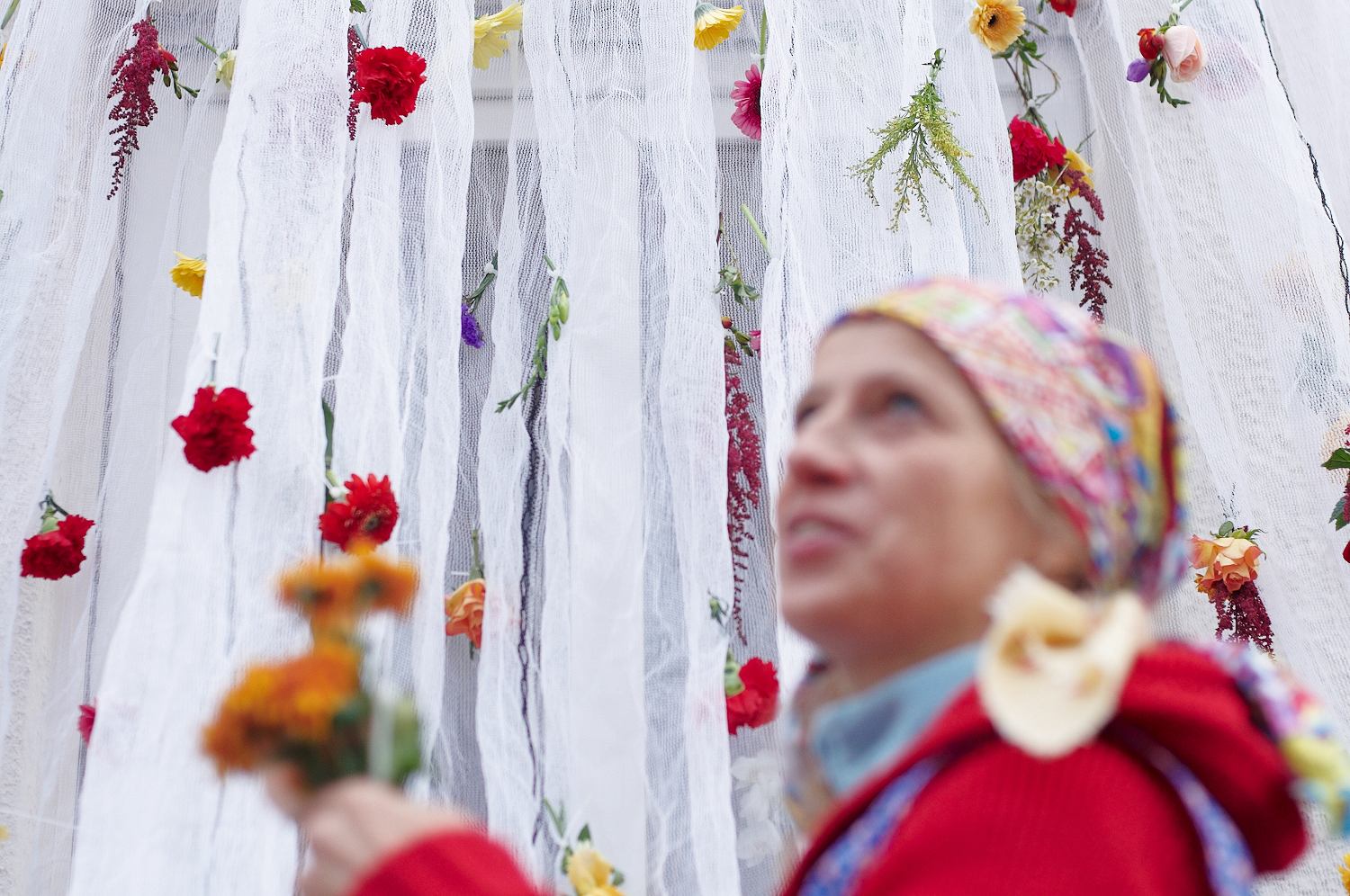 Die Beteiligung mit Blumenspenden und Mithilfe von BesucherInnen zeugen von Solidarität. Anders als die dahinter stehende Aufforderung an die BürgerInnen, bleibend etwas zur Begrünung der Häuserfassaden beizutragen, entfernt die Künstlerin ihr Tagwerk.
