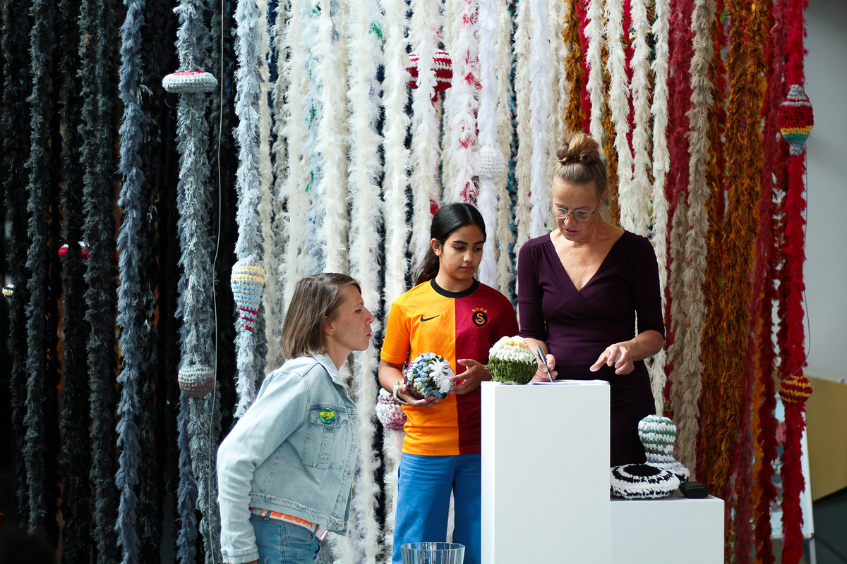 The process of co-creating this ever-changing installation was the actual artistic work. It took a lot of letting go on the part of the artist when it came to the aesthetic design of the work. The objects created in the workshops were of different quality, and the hanging also depended on the taste of those involved.