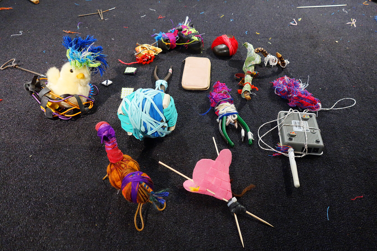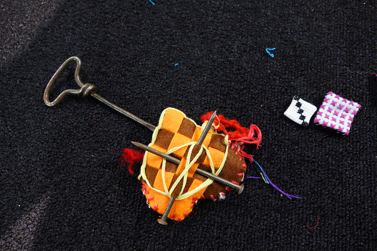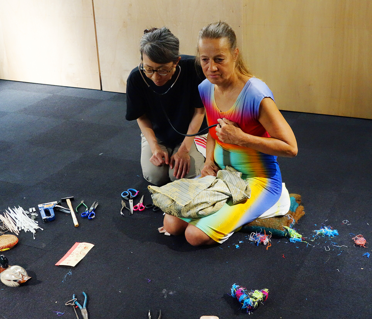 I ask the visitors to decorate and transform the objects they have brought with them that are dear to them with the materials lying around. After three and a half hours I cut open the heart and take out the book. Instead I put the stethoscope in and mend the heart so that it is whole again.
