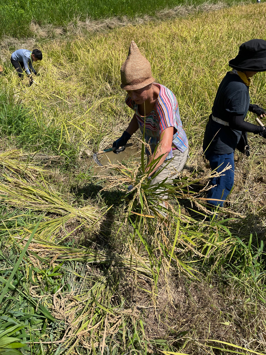 Yoshiki Hayashi is the founder of the small earth eco-community, runs the Yugitsuka community center there and is committed to preserving and promoting rural life, restoring original agriculture, e.g. the rice harvest is done by hand and with the help of many volunteers who come from the surrounding areas but also from the city.