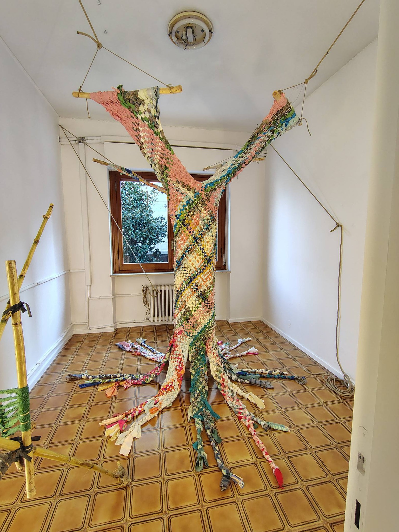 focusing on textile upcycling and learning primary textile techniques (weaving, knotting, and braiding).