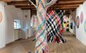 The Hollow Tree was created from a huge load of old bed linen from a youth hostel. It was woven almost against the natural direction of growth, that is, from top to bottom. It demonstrates the aging process of all living things and the irregularities in growth that must be accepted.